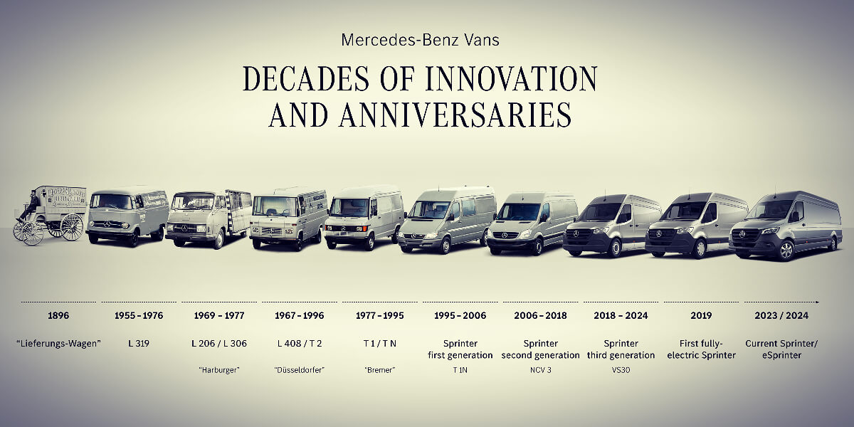 The 30 vans mark 30 years of Sprinter commercial vans which come in many shapes and sizes.