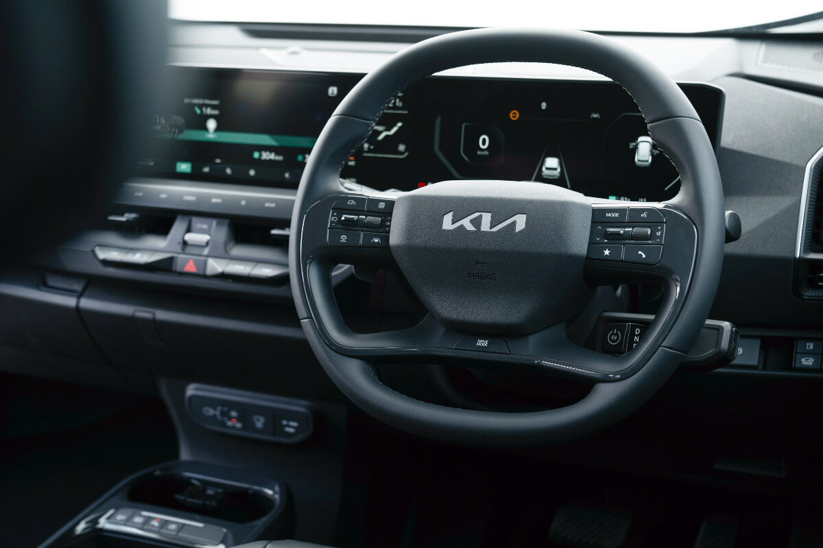 The cabin sets a high standard of fit-and-finish through touches of the award-winning EV9 across the range.