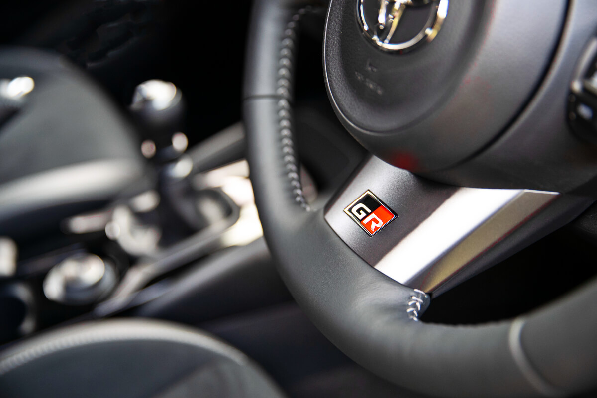 Back in the performance mood, gains include dedicated gearshift, and centre console, aluminium pedals, manual parking brake and leather-bound steering wheel plucked from the GR Yaris.