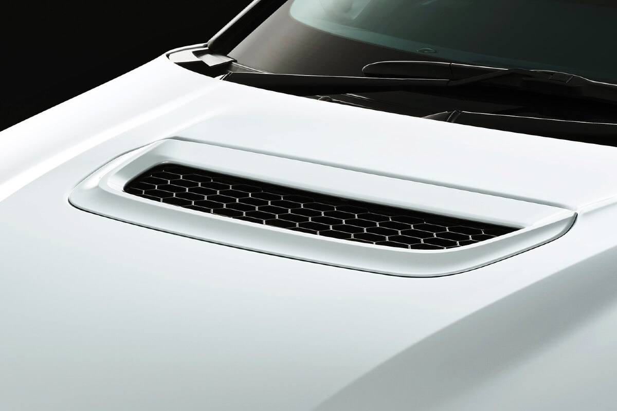 It starts with a large cooling duct and grille on the hood, which helps to discharge heat from the engine compartment.
