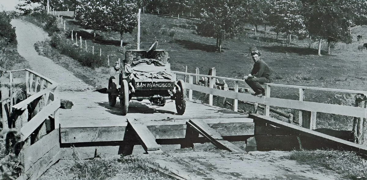 North of Sacramento, a woman misdirected them for a total of 108 miles so her family could see their first car.