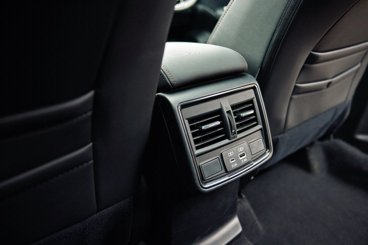 Front ports offer convenient access for both device connectivity and power delivery, with rear ports enabling passenger charging, keeping tablets and smartphones powered up and ready throughout longer journeys.