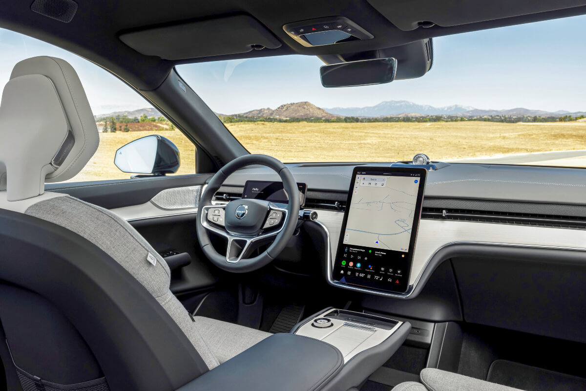 Some elements of the XC90 remain. For example, lighting up front is a Thor’s Hammer of sorts; and as with most EVs, gone is the grille (no ICE radiator, you see).