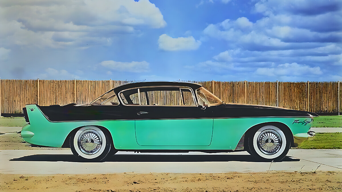 Both predicted Chrysler’s future design themes for 1957, especially the low profiles and towering rear fins.
